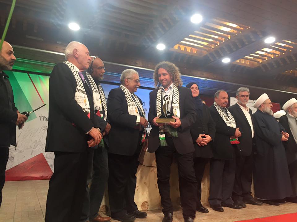-كرّمته الحملة لنشاطه المستمر لأجل فلسطين، ومشاركاته ضمن النشاطات التي تتعلق بفلسطين في أميركا اللاتينية،
