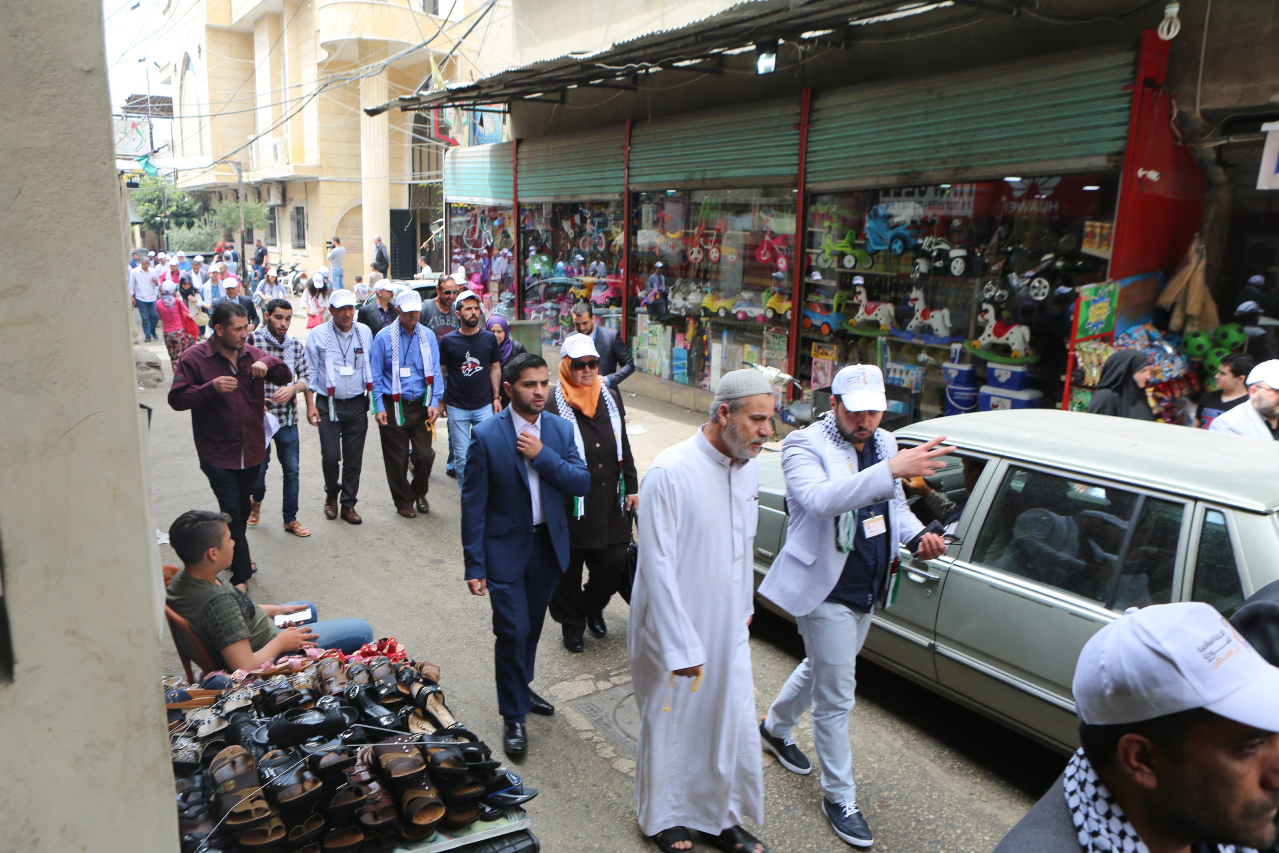 قام الوفد الدولي للحملة العالمية بجولة داخل مخيم برج البراجنة في بيروت، ضمن فعاليات المؤتمر الدولي لدعم فلسطين “الملتقى التشاوري”، زار فيها الوفد مسجد المخيم،