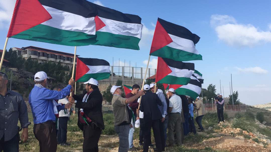 الوفد الدولي للحملة العالمية يرفع الأعلام الفلسطينية عند الحدود