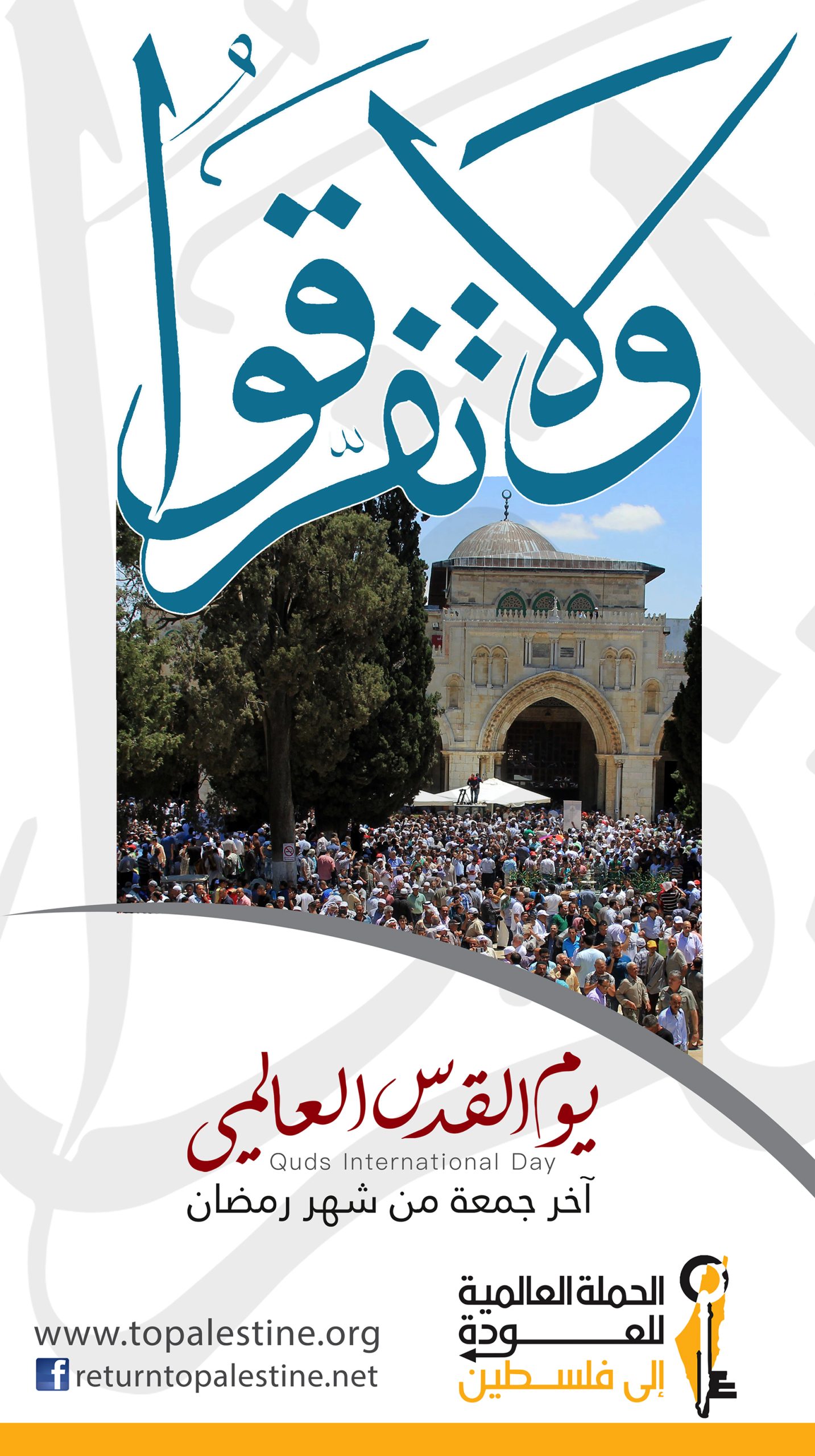 عملت الحملة العالمية بمناسبة يوم القدس العالم 2017، على تحفيز أصدقائها في مختلف الدول للمساهمة في الأنشطة المقامة بالمناسبة في دولهم، وأقامت حملة إلكترونية موسعة تحت شعار “ولا تفرقوا” لتأكد أن القدس هي العنوان الجامع في ظل الاحتراب والتنازع المتزايدان.