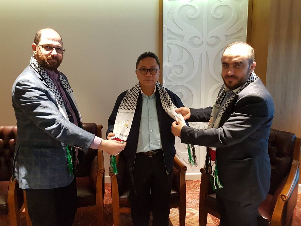 التقى وفد الحملة العالمية للعودة إلى فلسطين برئاسة المنسق العام الشيخ يوسف عباس مع رئيس مجلس الشورى الإندونيسي ذو الكفل حسن، في مبنى البرلمان بالعاصمة الإندونيسية جاكارتا.