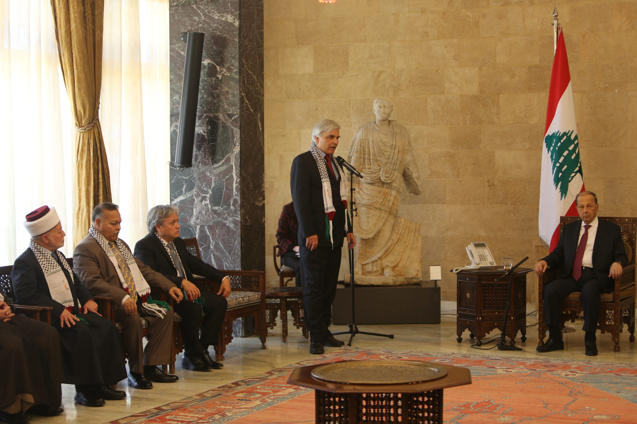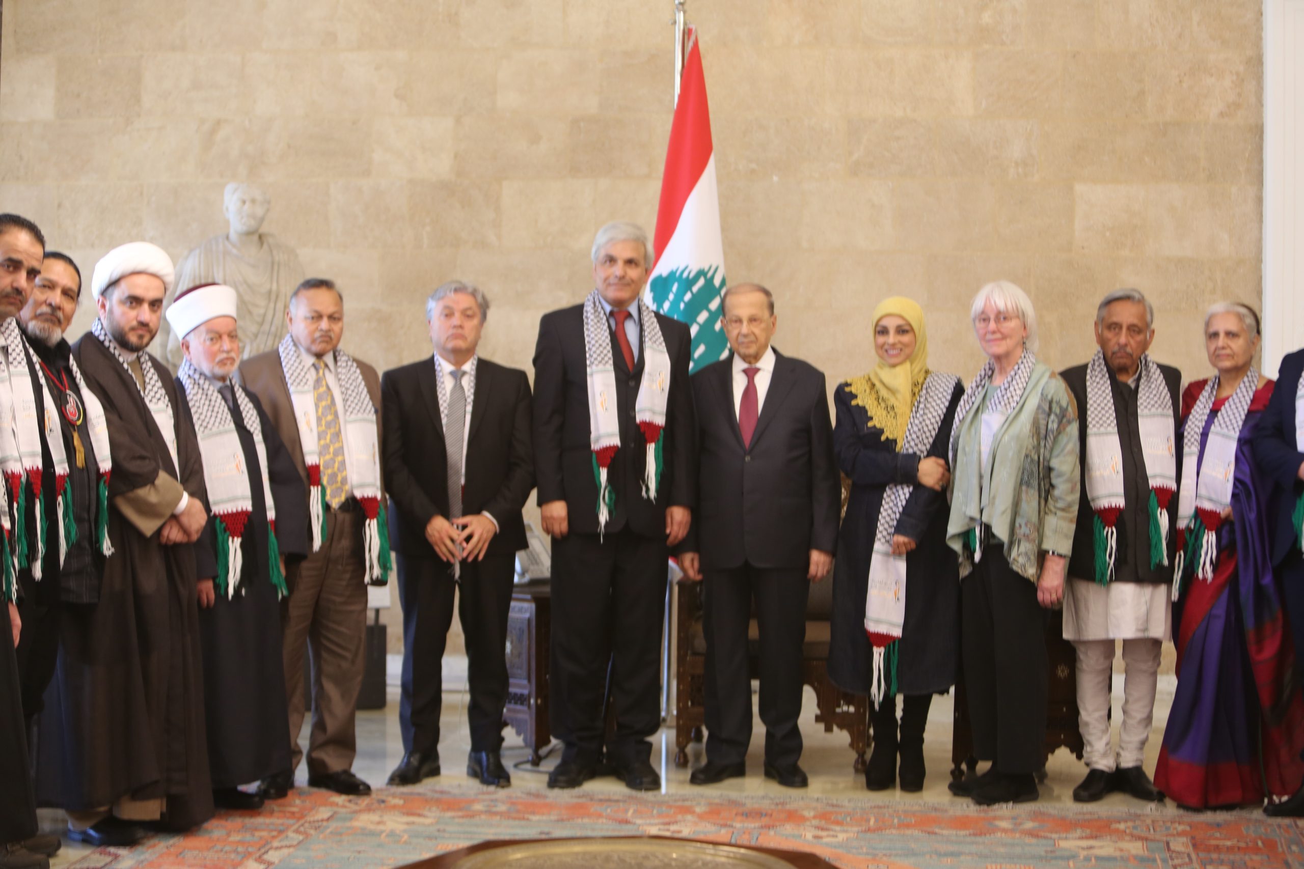 رئيس الجمهورية اللبنانية يستقبل وفداً من المشاركين في الملتقى الدولي الرابع للتضامن مع فلسطين