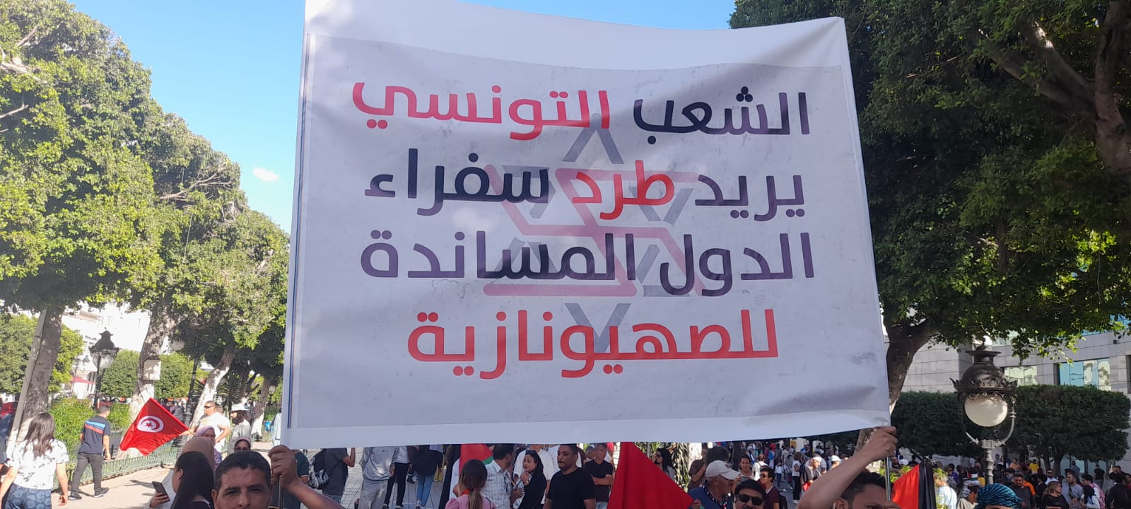 وحاصرت جماهير الشعب التونسي العظيم سفارة فرنسا بشارع الحبيب بورقيبة في تونس، منددة بإجرام الكيان المستمر، وخصيصاً مجزرته الأخيرة في مستشفى المعمداني بقطاع غزة.