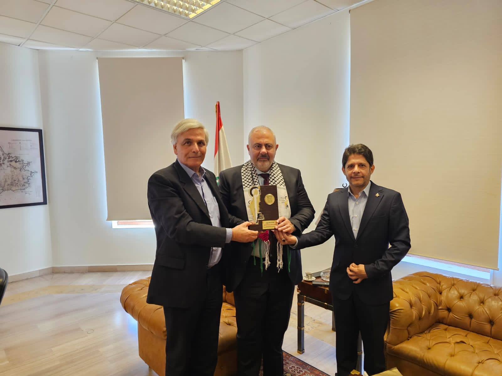 في ختام اللقاء قدم وفد الحملة العالمية للعودة الى فلسطين درع تكريم لمحافظ بيروت القاضي مروان عبود عربونَ شكر وتقدير لجهوده المبذولة في سبيل دعم القضية الفلسطينية.