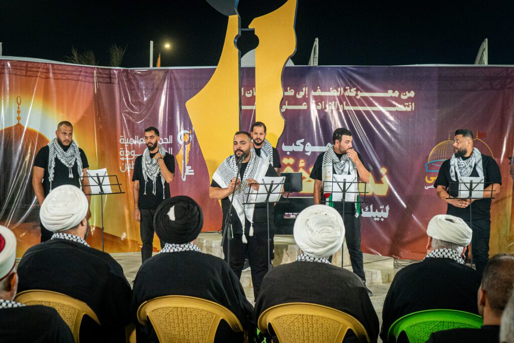 وفي الختام، جالت الوفود المشاركة في مراسم الافتتاح أرجاء الموكب وأقسامه المختلفة، واطّلعت على التصاميم الفنيّة المرتبطة بالقضية الفلسطينية والتي عُرِضت في معرض الموكب.
