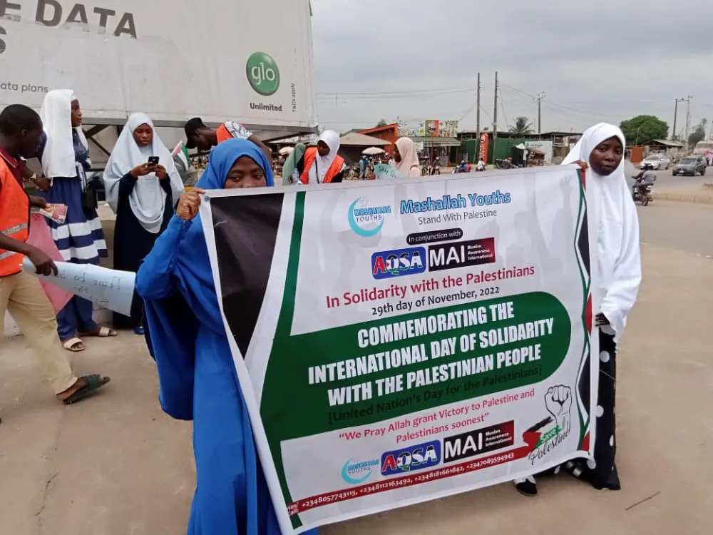 Friends of the Global Campaign to Return to Palestine in Nigeria revived the “International Day of Solidarity with the Palestinian People by raising Palestinian flags and large banners on which they wrote “Do not stop talking about Palestine” and “Solidarity with the Palestinian people” while touring the streets.