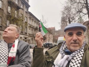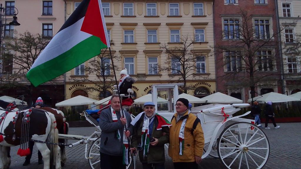 Members of the Global Campaign to Return to Palestine in Poland raised Palestinian flags and wore the Palestinian kufiyah and toured the streets in solidarity with the Palestinian people on the occasion of the International Day of Solidarity with the Palestinian People.